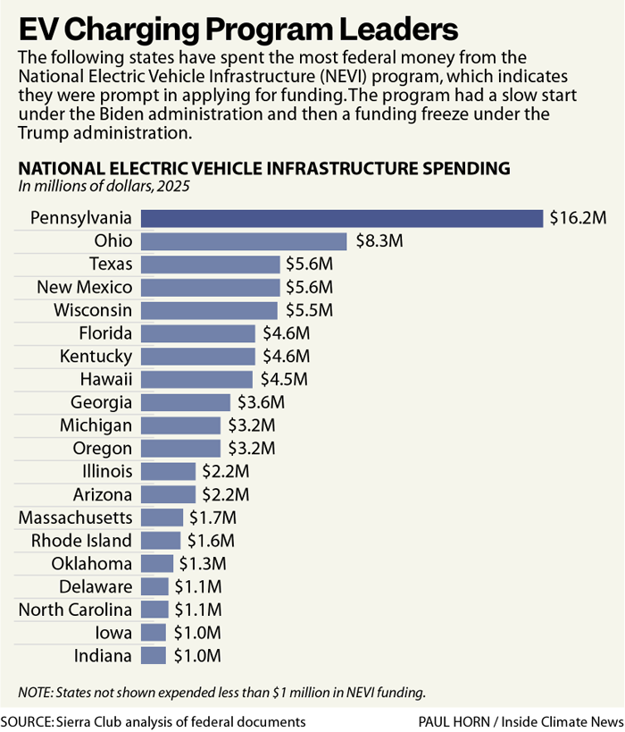 Il serait raisonnable de supposer que NEVI n’a pas fait grand-chose. Mais un rapport publié cette semaine par le Sierra Club raconte une tout autre histoire. Malgré de nombreux obstacles, le programme a accru sa portée et ses réalisations en 2025, les États dépensant 94 millions de dollars en projets. Cela représente plus du double des 44 millions de dollars dépensés en 2024. Cela se traduit par des centaines de ports de recharge, avec des accords pour en déployer des milliers d’autres.